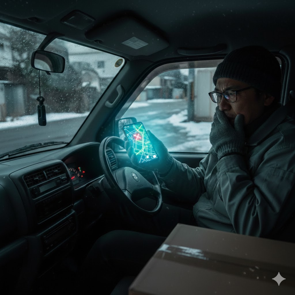 軽貨物ドライバーにとって、スマホ画面に灯る「青い点」と「ピン」は絶対の道標だ。だが、その信頼は時として牙を向く。